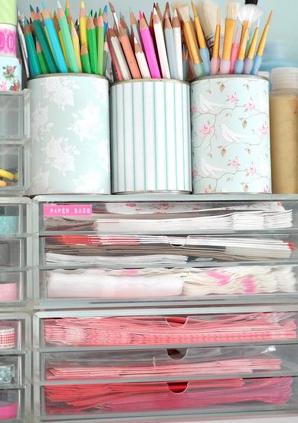 Hola! Buscando un post que había publicado en el Blog deCreativitart recuperé unas imágenes que tenía guardadas en mi Pinterest y la verdad me las quedo mirando embobada porque sería un sueño tenerlo. Todo ordenado, clasificado, por colores, texturas, materiales....yo ordenada soy pero cuando voy a buscar algo....ayyy madre que no lo encuentro, no sé si a uds les pasa lo mismo ? Para ésta mañana de martes les dejo un poco de Inspiración Scrapera