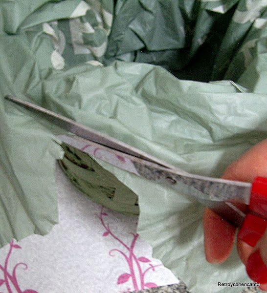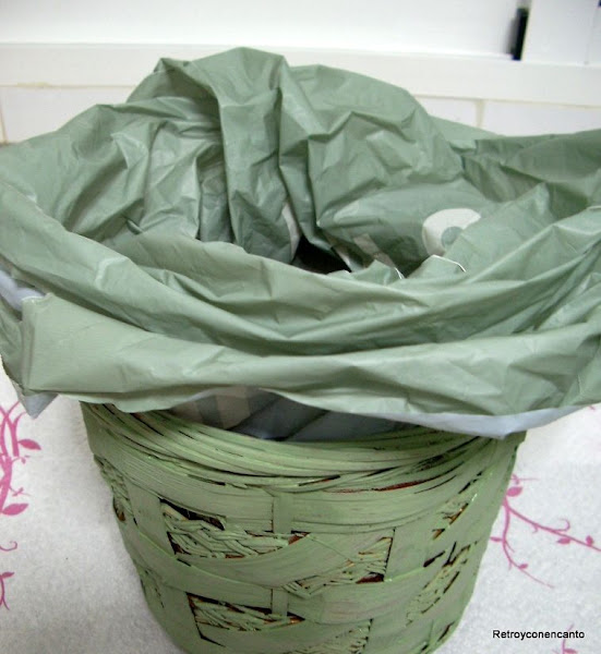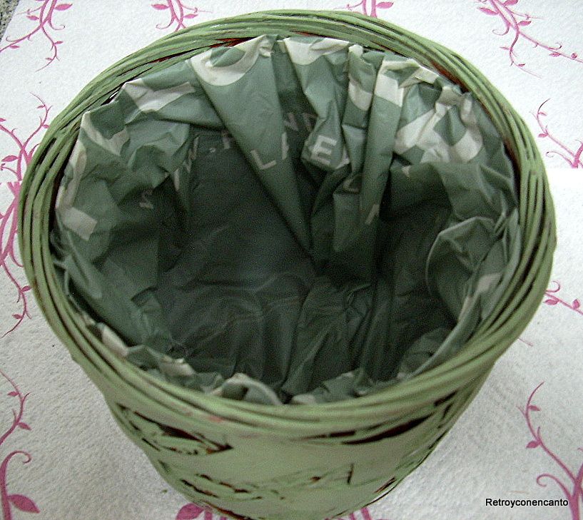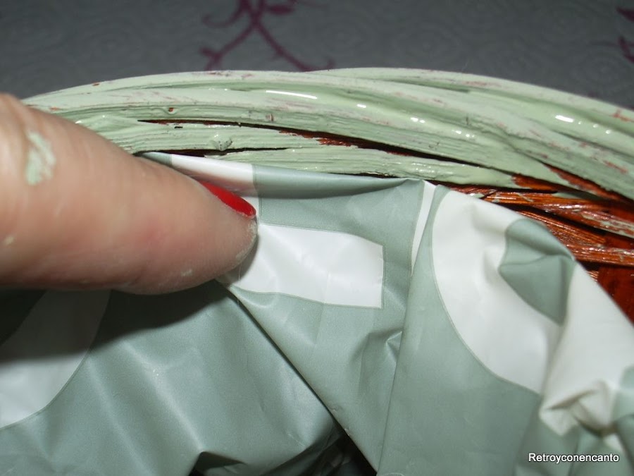 Al ver que el color era casi idéntico al de la pintura elegida, decidimos usarla, dándole la vuelta, para cubrir el interior de la cestita. ¡Tal que así!