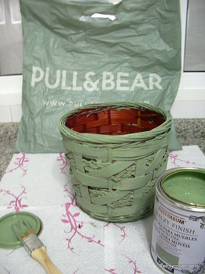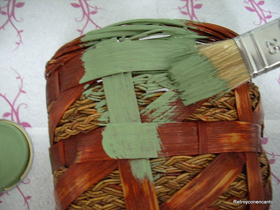 Una manita rápida y sin mucha meticulosidad, dejando entrever el mimbre, le dará un aire más original a nuestro receptáculo.
