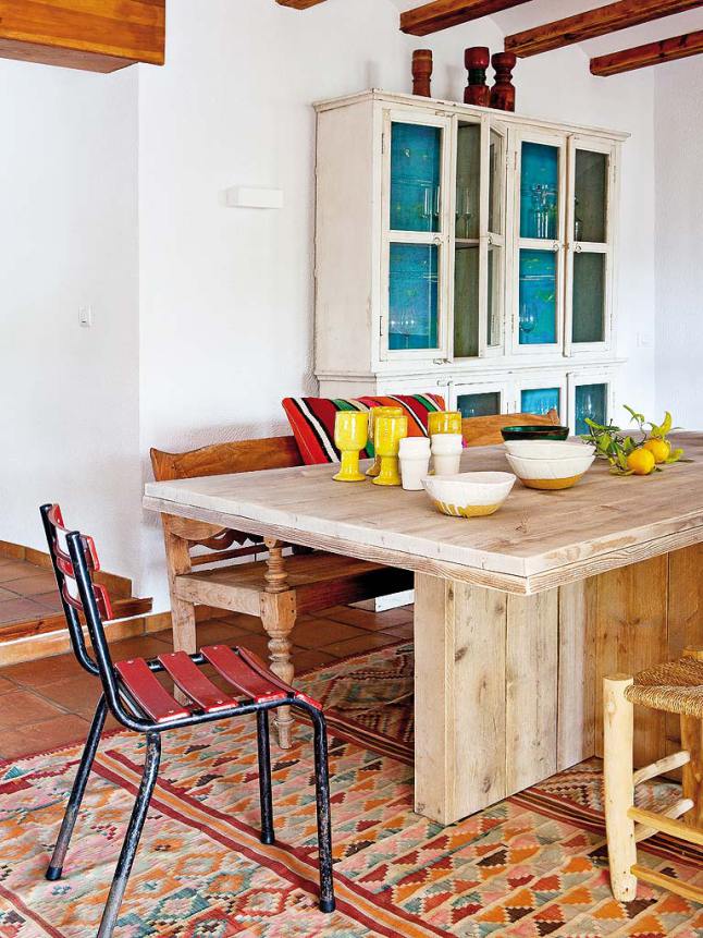 Esta cocina si tuviera también los muebles de madera sería demasiado, por eso pintarlos de azul ha y darles ese efecto envejecido ha sido un gran acierto. Le ha aportado mucho color! ¿No creéis?