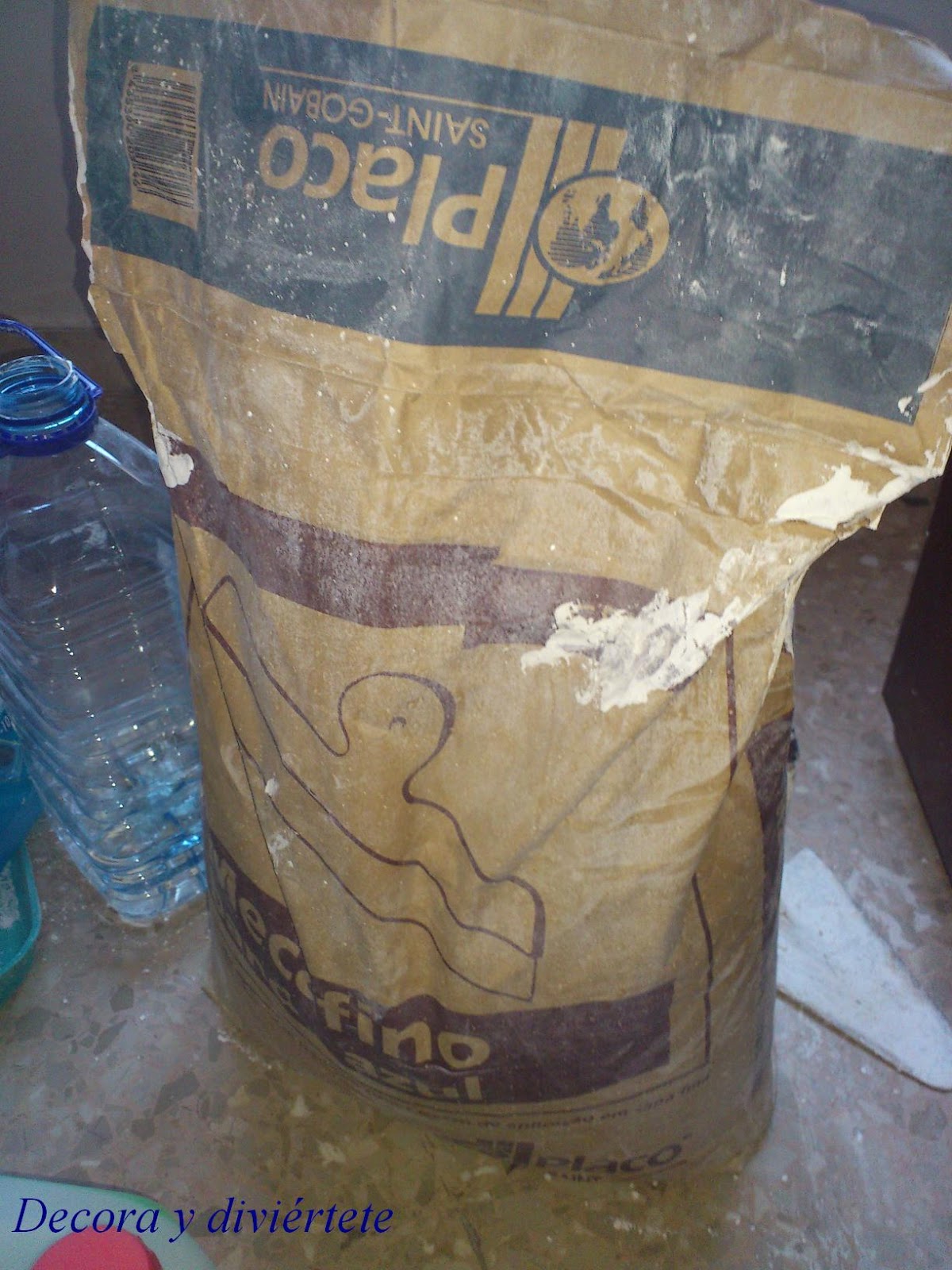 El megafino que yo estoy utilizando es el de la marca Placo Banda Azul , para quien no lo conozca , es un producto de base de escayola de una elevada pureza . Al mezclar agua con el megafino tienes que mezclarlo muy bien hasta conseguir una pasta muy fina , dejarla un poco a que se espese ( tiene que quedar como una pasta cremosa , no se si me explico .... ) y luego aplicarla con llana a la pared.