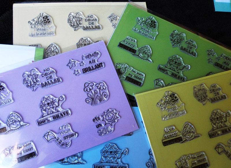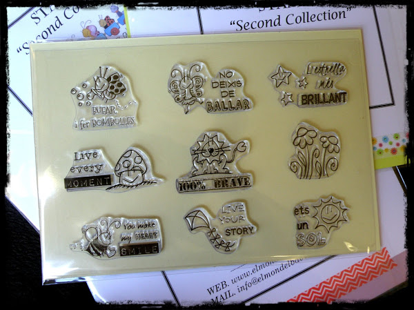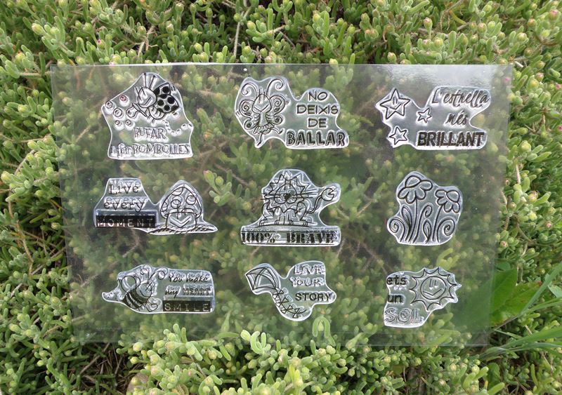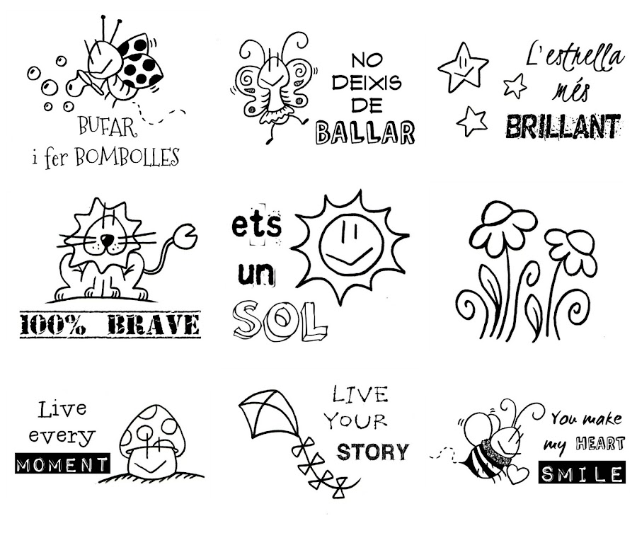 Como la primera, es una colección de 9 sellos, cada uno con nuestros dibujos, y casi todos con una frase o palabra que les identifica, excepto el de nuestras florecitas.