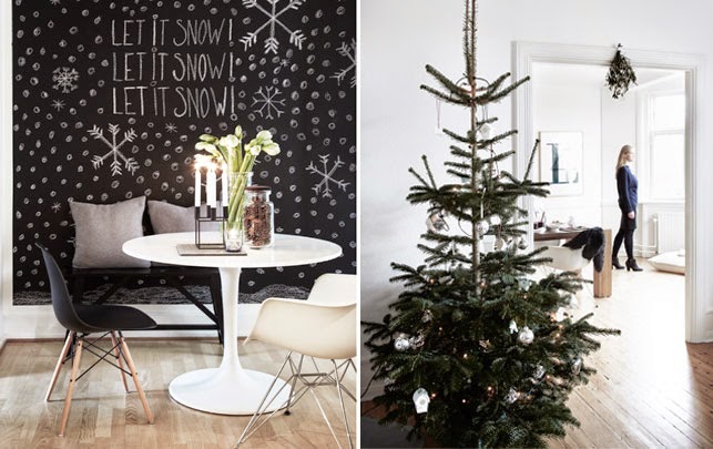 En esta casa han contado con todos los elementos típicos de la época, un abeto, un calcetín, el muerdago...e incluso tienen galletitas "ginger man" pero han prescindido de color y han optado por utilizar una decoración en blanco y negro,