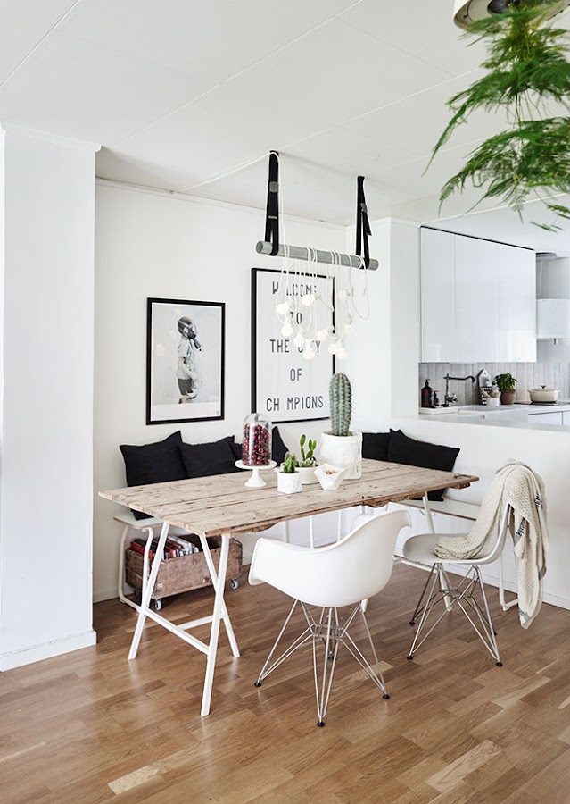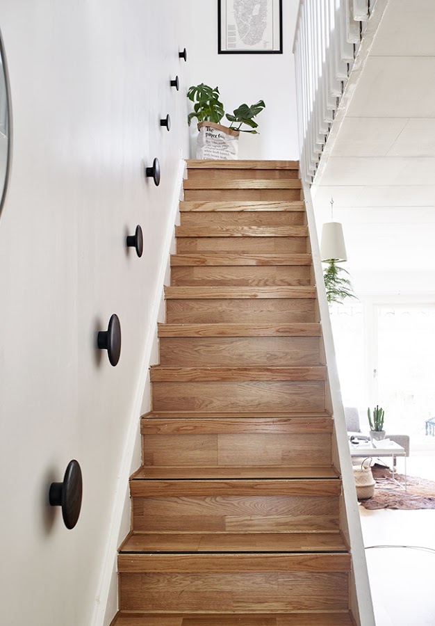 En la parte de abajo encontramos una mesa handmade con un tablero de madera natural y dos cabelletes de San Ikea y para ahorrar espacio nada como banquito de asiento. Otro de los detalles que me ha encantado es la barandilla... hecha con pomos de colgar que se usan en caso de apoyo una idea original aunque tal vez algo arriesgada pero como broche final encontramos el segundo salón hecho con palets y con un resultado que seguro que os va a encantar, una casa con mezcla low cost y elementos mas elaborados a la que no le falta detalles par ir como decimos aquí ... poco a poco.