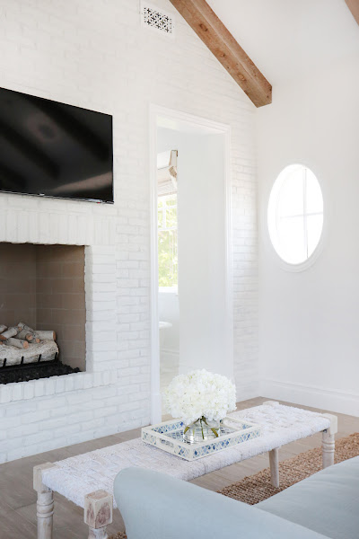 Seguro que muchos de nosotros nos gustaría tener un dormitorio en la línea de este que visitamos. Amplitud es evidentemente lo primero que podemos ver de el. Con sus techos altos y abuhardillados, sus amplios ventanales y sus paredes pintadas en blanco, el espacio cobra más amplitud. Por otro lado, ¿a vosotros no os transmite serenidad? porque a mi me parece una estancia que transmite eso, mucha tranquilidad, mucha serenidad. Un lugar donde relajarse leyendo un libro en esa pequeña zona reservada junto a uno de los ventanales o sentado delante del fuego de la chimenea a los pies de la cama. Sin duda perfecto para desconectar.