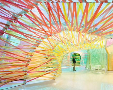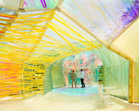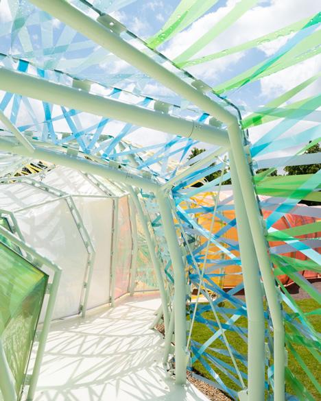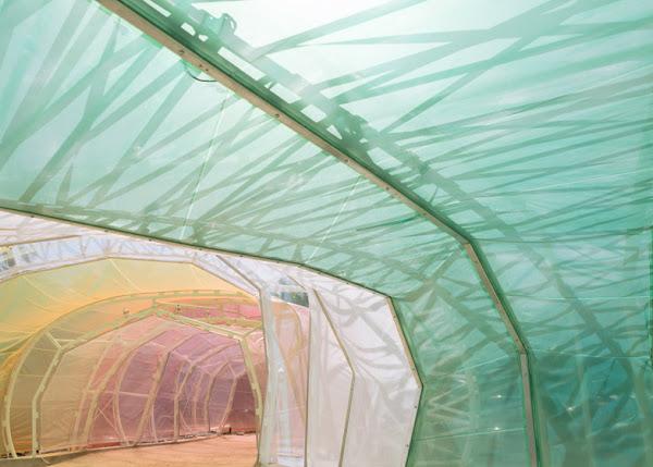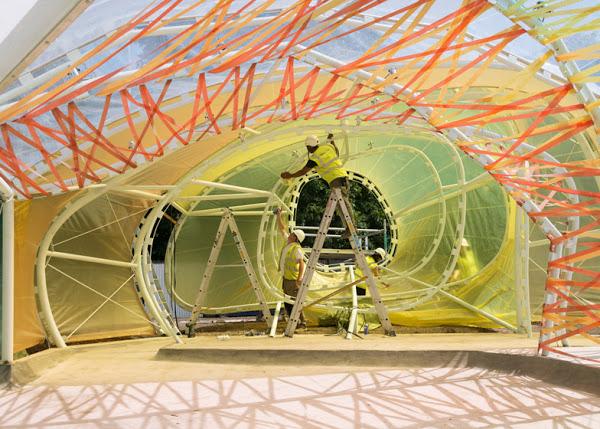 La propuesta, es una especie de laberinto, con estructuras de anillo, cada poca distancia para hacer que la sección del pabellón varíe. Todo está cubierto, por varias capas de plático especial -EFTE- que les ha permitido jugar con las diferentes opacidades, colores, texturas e incluso efecto "espejo".
