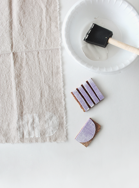 Con el rodillo o cepillo expandir la pintura en la gomaespuma de nuestro sello y estampar la servilleta.