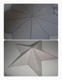 A continuación, dobla el cartón a lo largo de las líneas marcadas para dar a la estrella el efecto 3D. Un consejo para esto es doblar la estrella por el centro en un pliegue colina (hacia el exterior) e ir alternando las líneas hacia el interior y el exterior.