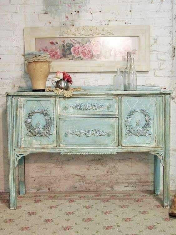 En su mayoría los muebles utilizados en este estilo decorativo suelen ser en tonos pasteles, cremas y blancos, combinados con detalles florales.