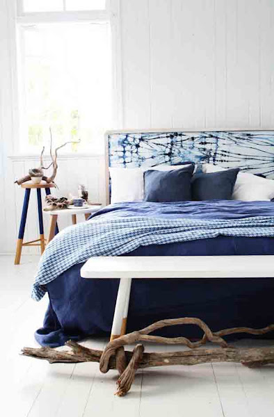 Teñir telas mediante la técnica Shibori, es espontáneo y muy cambiante. Los estampados de este estilo decoran la casa por completo. El estampado Shibori está muy de moda, muchas firmas de decoración lo han incluido en sus catálogos: Cojines, fundas para sofás, juegos de sábanas y nórdicos, manteles y cortinas... cualquier textil de fibra natural es adecuado para ser decorado.