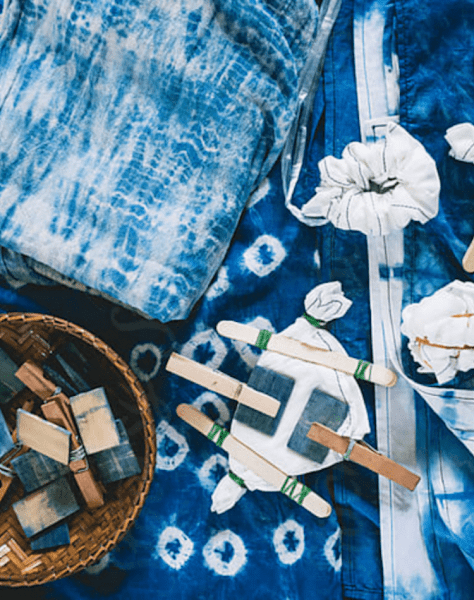 Esta técnica de estampado estilo Shibori, no es otra que la que conocemos como Batik o Tie Dye. La diferencia básicamente consiste en que en esta antigua técnica japonesa sólo se hace uso del tinte color índigo y el Tie Dye en realidad es sólo una pequeña parte de la práctica shibori.