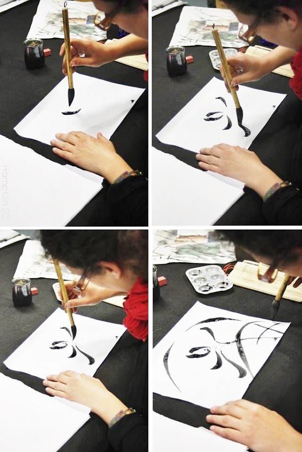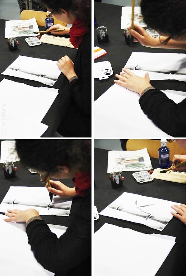 En el taller de Sumi-e, impartido por Luciana Rago, estuvimos practicando