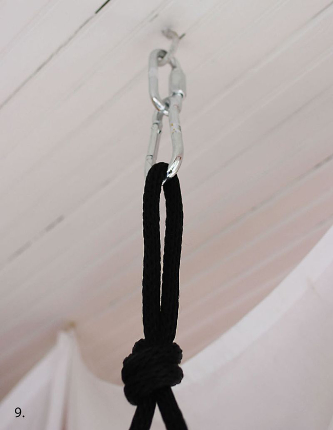 Este trabajo creo que es de los mas se puede explotar nuestra creatividad ya que además del columpió en sí, se personaliza la tela y es donde cada uno le puede dar su toque personal. El paso a paso lo poséis ver al completo en el blog A beautiful mess, yo he querido compartir la idea porque me pareció original, actual y sobre todo low cost.