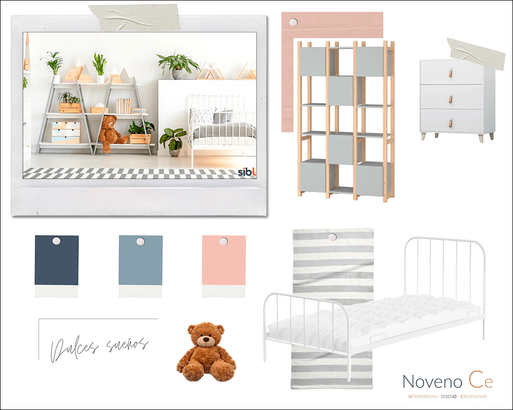 Una de las cosas que suelo hacer antes de elegir el mobiliario es imaginar el ambiente en el que me gustaría vivir o el que creo que les va a gustar a mis clientes. Para ello, diseño un collage con imágenes de mobiliario, paletas de colores y complementos necesarios para crear el ambiente ideal.