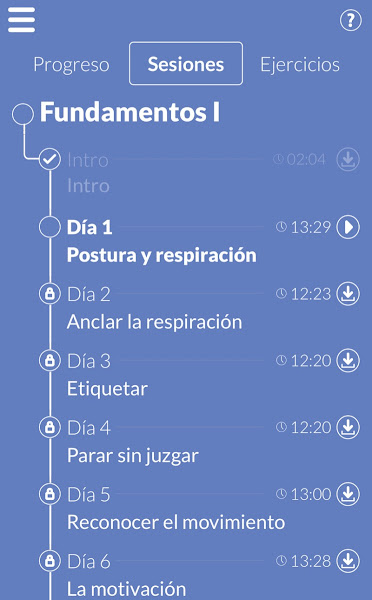 La aplicación es sencilla de usar y las siete primeras sesiones son gratuitas, así que podéis descargarla en este enlace y probar si os gusta el método. Al inicio de hace un test y luego puedes ir repitiéndolo para ver qué tal estás y cómo te está ayudando.