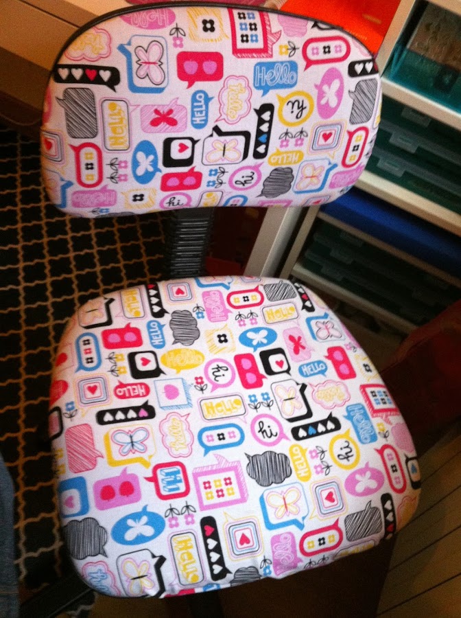 Hoy os traigo una idea para aprovechar una silla vieja. En mi caso tenía la típica silla negra de despacho con ruedas, pero que le cayo pegamento y se quedo una mancha desde hace no se cuanto. Así que con un retal de tela vamos a hacerle una funda nueva.