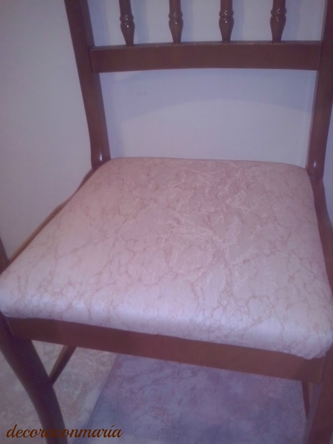 Cumpliendo hoy con lo que os había comentado, os muestro la otra silla tapizada (cuatro han sido)