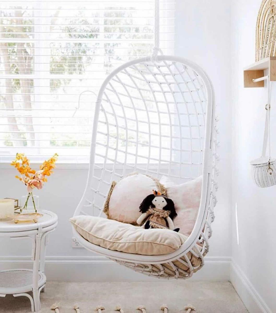 Fuente: pinterest Las sillas colgantes en los dormitorios infantiles será el mejor aliado para que tus hijos se sientas felices y cómodos. Los modelos colgantes son más ligeros que los que tienen estructura con base en el suelo.