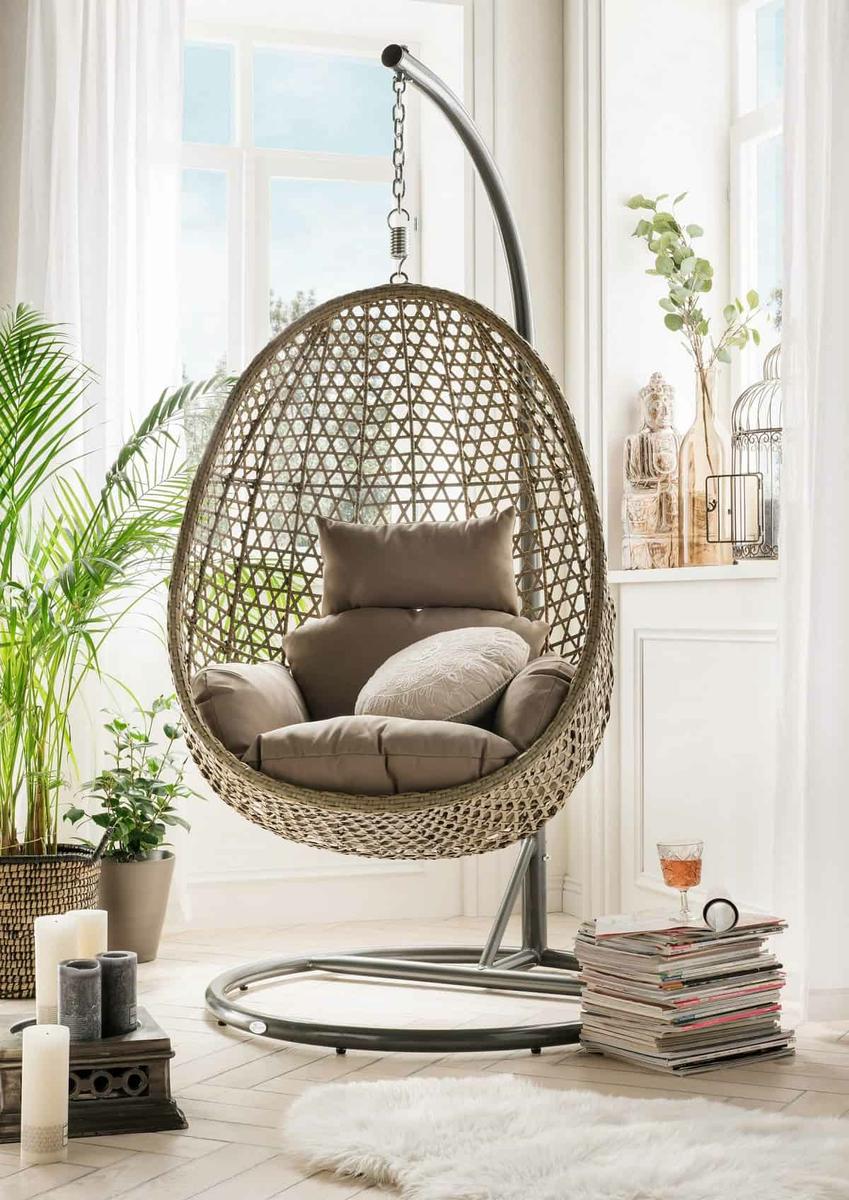 Fuente: pinterestSilla colgante tipo huevo. Existen las dos modalidades con soporte y para techo. Se puede situar tanto en los espacios interiores como exteriores.