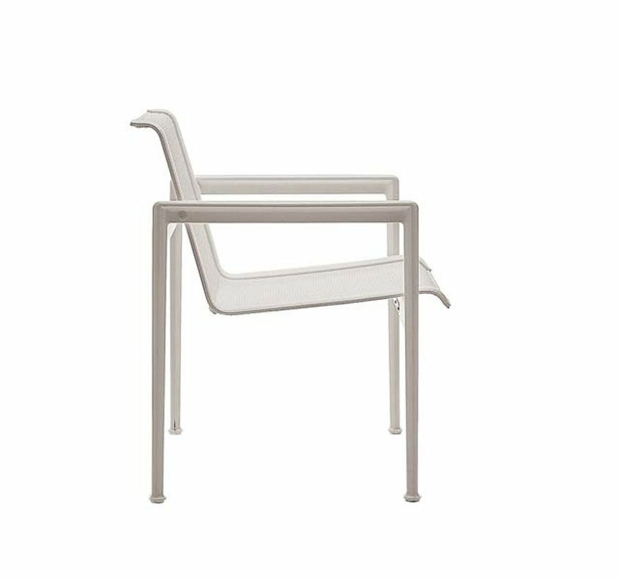 El diseñador Richard Schultz ha elaborado para la firma italiana Collection, una silla pensada para exteriores pero válida para cualquier ambiente. Sus líneas simples la convierten en una pieza refinada y estética. Los acabados de las bases son de aluminio pintado en blanco y los asientos y respaldos en poliéster, lo que la hace muy resistente