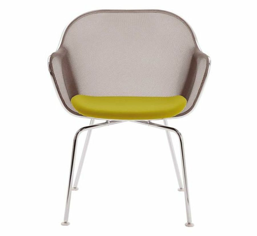 La firma B&B Italia ha elaborado una línea de sillas con formas y diseños originales sin olvidarse de la comodidad. El modelo Luta, diseñado por Antonio Citterio, está formado por una carcasa técnica de rejilla metálica con un borde en aluminio. El asiento puede ser de plástico o tapizado, tanto en piel como en tejido. Las patas son tubos metálicos.
