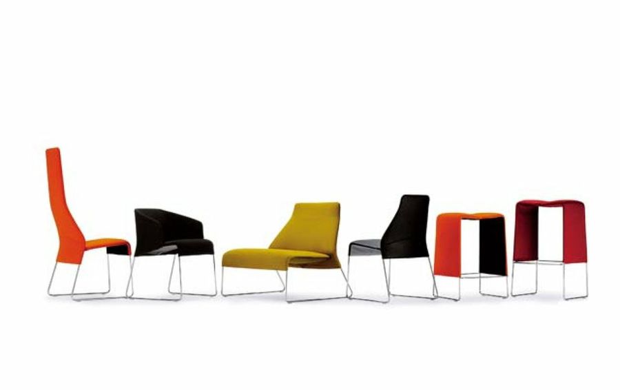 La gama de sillas, butaquitas y taburetes Lazy es de la diseñadora Patricia Urquiola y está pensada para albergar todo tipo de espacios, tanto domésticos como públicos. Las estructuras son metálicas con acabados cromados brillantes y el revestimiento puede ser monocolor o bicolor, ya que son diferentes según el tipo de asiento.