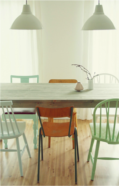 Una pregunta: las sillas que ponemos en el comedor alrededor de la mesa, ¿tienen que ser todas iguales? Bueno, suele ser lo habitual, pero para mi la respuesta es no; no tienen porqué ser iguales.