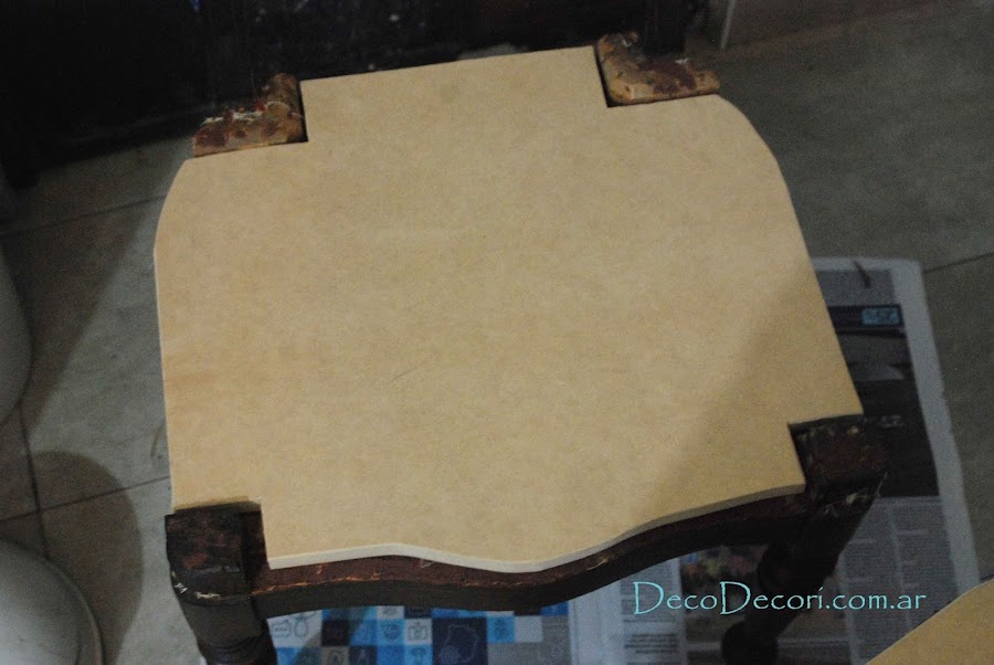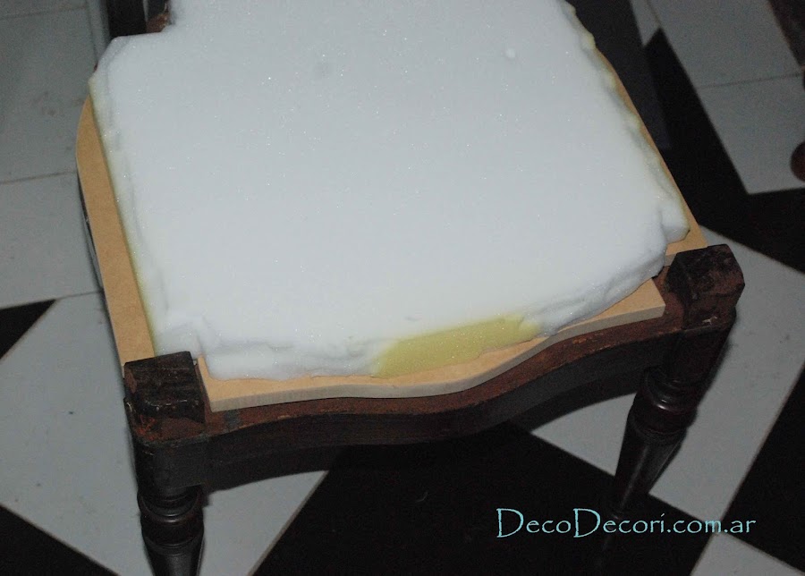 Para darle más firmeza a la silla y no hacerle más agujeros, resolvimos sellar los agujeros y colocar una placa para tapizar.