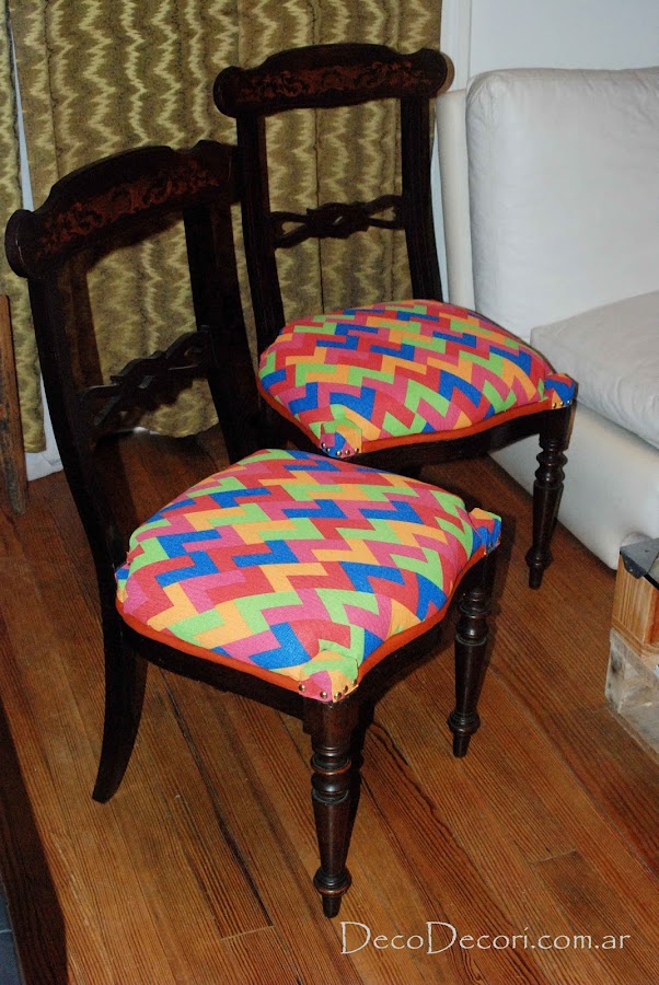 Tommy me trajo un par de sillas para retapizar que eran de la mamá de su mamá, y eso como dice la publicidad: hay ciertas cosas que no tiene precio y las convierte en las más lindas del mundo y la verdad... son hermosas.