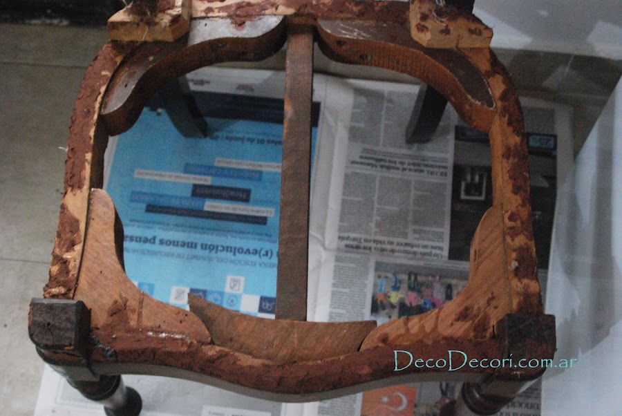 Aclaro: El tapizado que tenía era de la vieja escuela que es el más lindo y el más mullido, con resortes, doble capa de cinchas, todo eso requiere una buena madera de donde sostener tanta cosa.