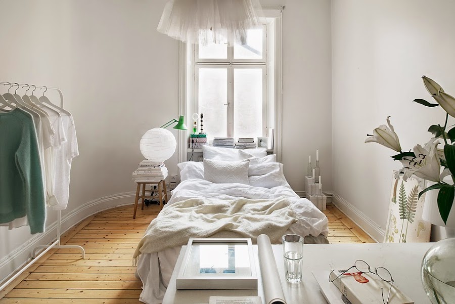 Este jueves nos despertamos desde una pequeña habitación que seduce a lo grande. Aquí, la simplicidad no ha podido enfriar ninguno de sus rincones. Aunque a priori pueda parecer fría, si se juega con las cartas adecuadas se consigue el resultado contrario. Esas cartas son pinceladas de color y muchas texturas con cuerpo. Un universo de simplicidad con mucho que contar. Como una mirada, sencilla y enrevesada. De esas que te encanta descubrir de vez en cuando para encontrar un momento de serenidad. ¡Feliz jueves!