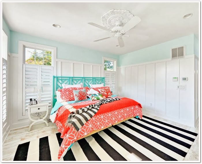Un poco aburrida ya del invierno, del blanco y negro en todas partes, no he podido resistirme a los encantos del turquesa, del verde chillón, del rojo.....y del aire marinero que desprende esta casa. Un hogar luminoso, donde los toques de color y los detalles dan personalidad a los espacios.