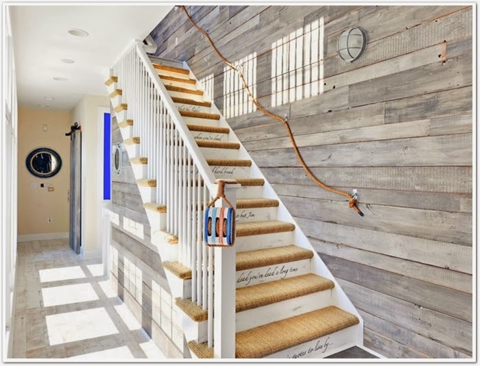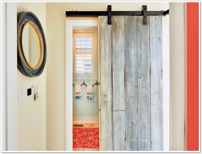 Textiles alegres, paneles de madera revistiendo las paredes, pasamanos de cuerda, y escritura en la contrahuella de la escalera. Techos altos, mucha luz y una puerta de granero que da acceso a un baño de aspecto marinero....Detalles y más detalles que marcan la diferencia. Que más os puedo decir que no os haya dicho ya......Ah, si! Soñad,soñad y podéis terminar el viaje por esta preciosa casa pinchando aquí.