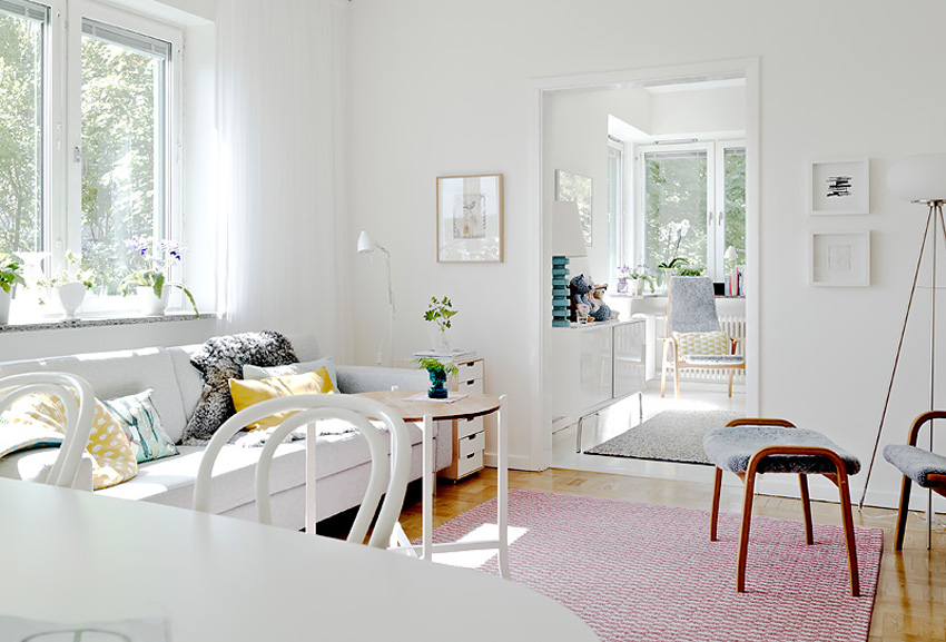 El proyecto es obra de la empresa sueca de home staging Stadshem (ya os comenté en otro post qué es el home staging) que partiendo de ese gran lienzo en blanco que es una casa para alquilar o vender, han conseguido un fantástico resultado: un apartamento sencillo y, sobre todo muy "vivible" porque, qué queréis que os diga, dejarlo en "habitable" sería, decir realmente poco del resultado final.