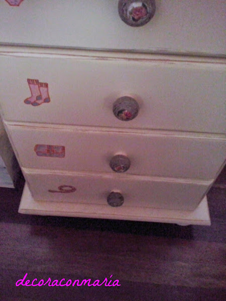 Ya tenemos en la habitación que me han encargado el sinfonier listo , al ladito del puf/escabel que habíamos visto en anterior post.