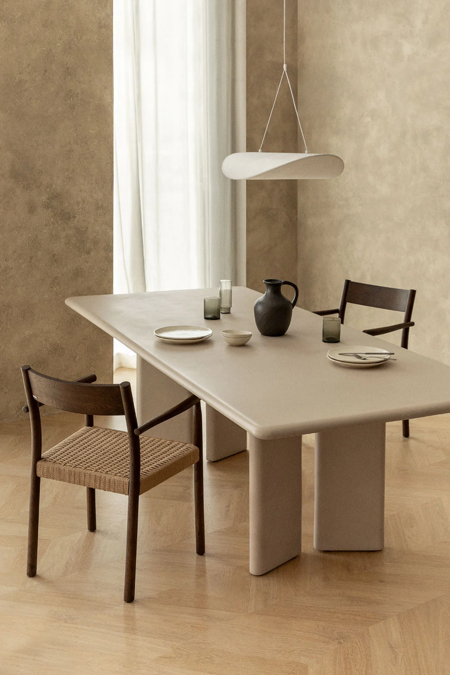 Mesa de comedor Munden: Espaciosa, versátil, atemporal y sofisticada. Puedes encontrarla en varias medidas. Sus patas redondas nos enamoran.