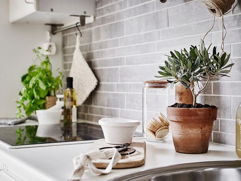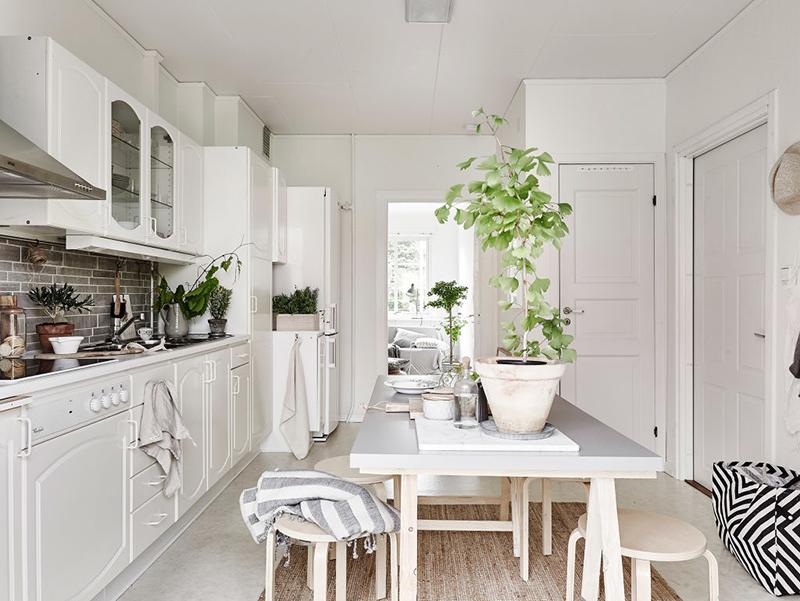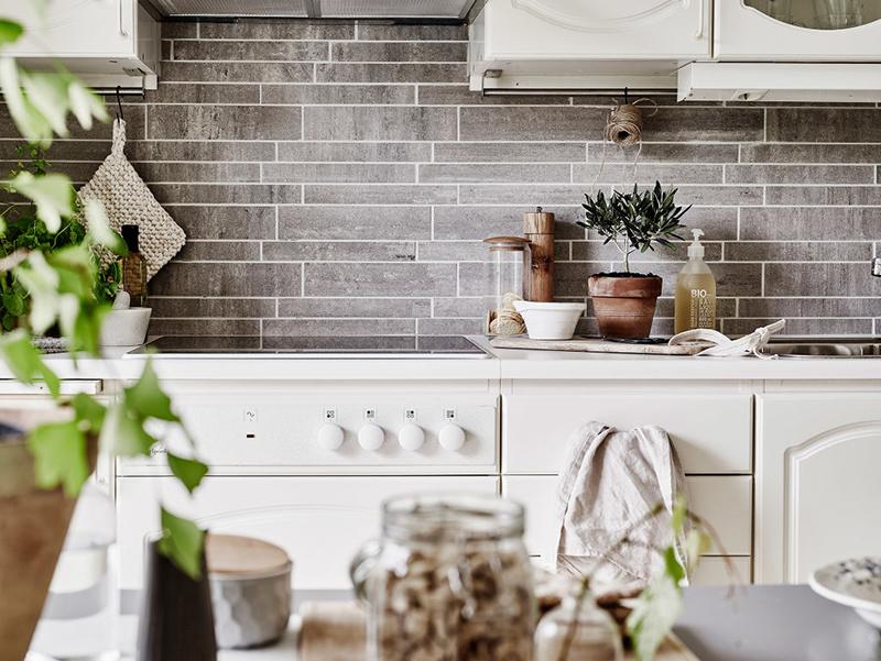 Los complementos que adornan casi todos los rincones de esta cocina, obedecen a la misma estética que el resto de la casa. En este caso, las cerámicas, los tejidos artesanos y las plantas aromáticas son lo que la visten, confiriendo ese ambiente saludable que desprende.