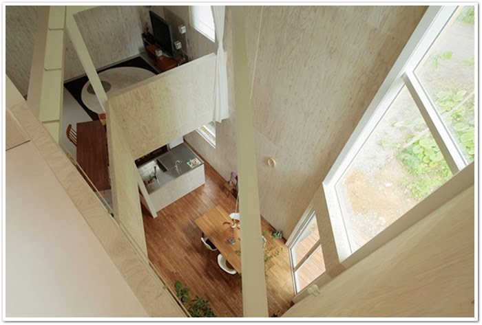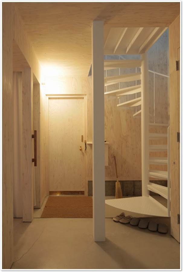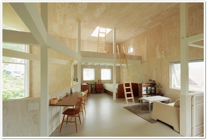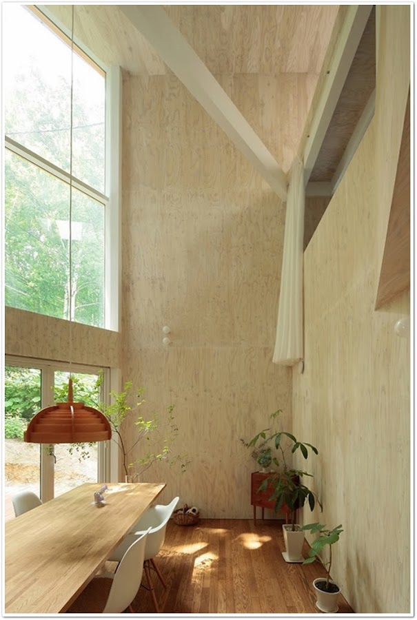 ¡Sorprendente el interior de esta vivienda! ¿O lo que es de verdad sorprendente es el exterior? Austera, sobria, de techos XXL y espacios llenos de luz gracias a los grandes ventanales. Una sola lámpara en el comedor, eso sí el resto se ilumina con bombillas estratégicamente colocadas en la pared. Me sorprende la ¿falta? de muebles y me encanta el revestimiento de techos y paredes. Fijaos en su estructura, y sus escaleras hacia los distintos niveles. Me da la sensación de que no es apta para niños! Por lo demás, a mi me ha dejado sin palabras........!original a tope!