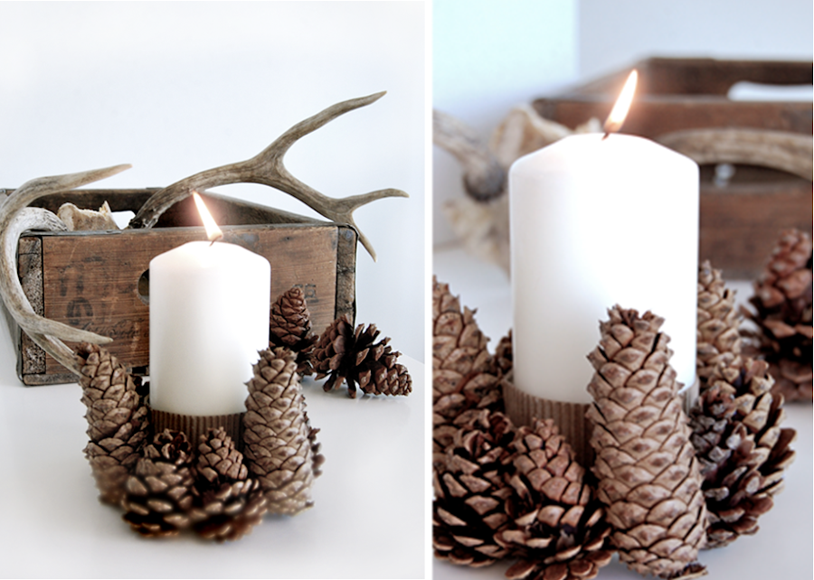 Dejamos por un momento los brillos dorados y nos adentramos en los elementos que nos ofrece la naturaleza para conseguir portavelas ecológicos y low-cost. Empezamos con piñas y cartón ondulado para crear este portavelas que he visto en el famoso blog nórdico Stylizimo