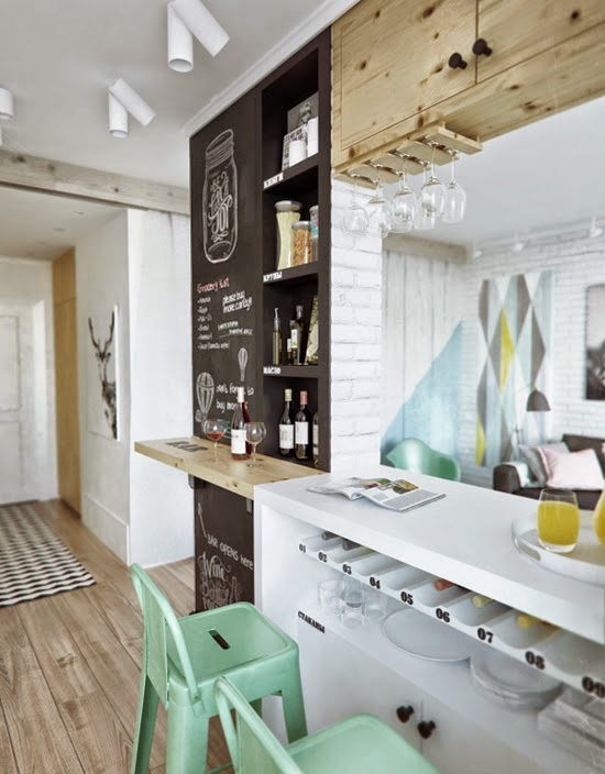 fijaros que forma tan original de construir una pequeña barra para desayunos o cenas,