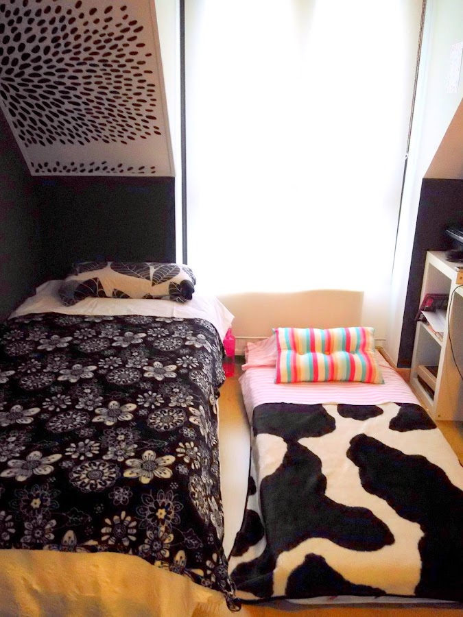 El primer paso es desplazar a otro lugar la mesa que habíamos añadido para dejar más espacio libre para una segunda cama. Ahora ya tenemos hueco para colocar otro colchón (que previamente podríamos tener guardado en otro lugar como podría ser debajo del sofá cama, o en nuestro caso el trastero, pues sólo se utiliza en determinadas situaciones y con poca frecuencia.