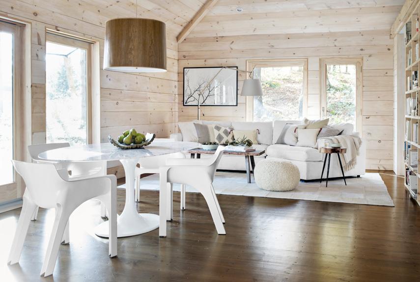 En esta cabaña llaman la atención varios puntos que a mi juicio son los que marcan la personalidad y son los que dan a la vivienda una sensación de amplitud,luminosidad y calidez.