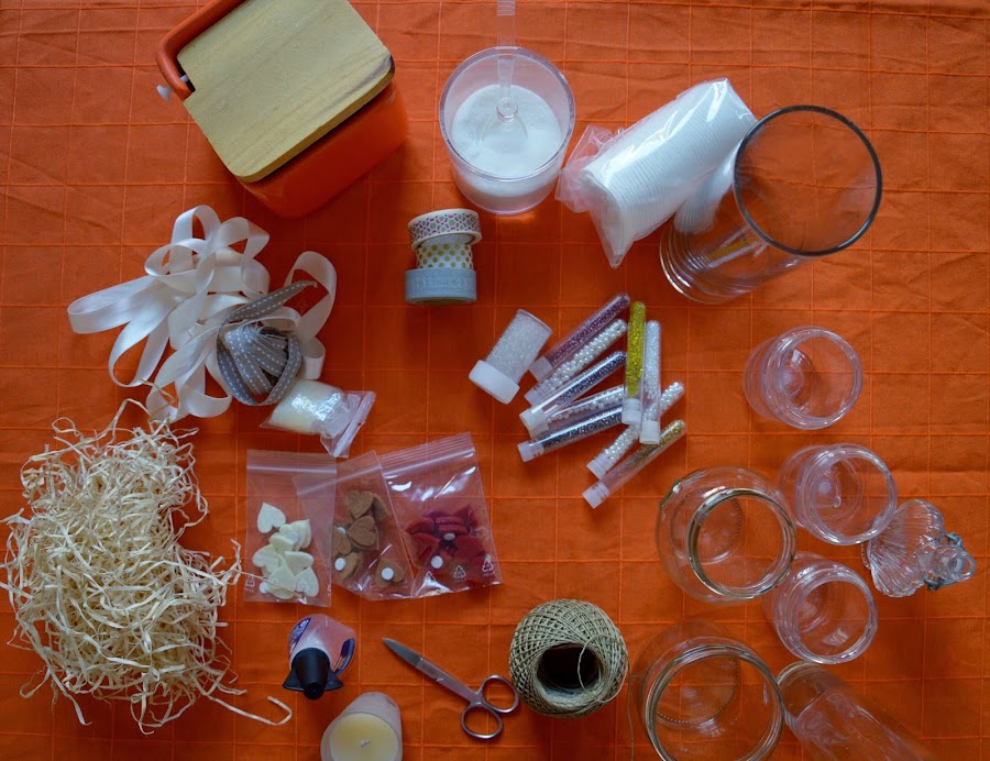 Puedes decorar los frascos con cualquiera de las cosas antes nombradas, no hace falta tener todo.
