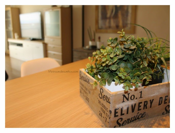 Poco a poco voy haciendo cosas para esta estancia, como el centro de mesa hecho con una caja de madera y servilletas.