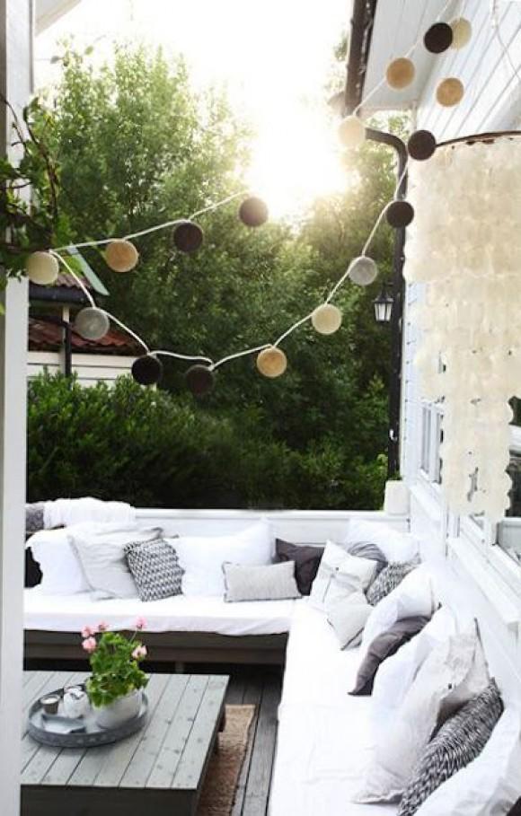 4. Iluminación: por el día la luz del sol nos recarga las pilas, y por la noche, coloca farolillos con velas o guirnaldas que iluminen y que aporten ese toque de magia para hacernos pasar noches de verano inolvidables.
