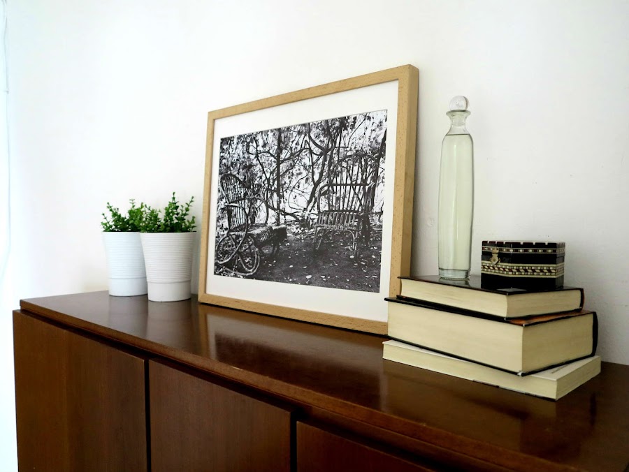En la decoración del mueble que tenemos a los pies quería que la pieza central fuera esta fotografía que me regalo mi hermano por lo que para no quitarle protagonismo añadí pequeños detalles y unas macetas, para dar más vida al conjunto resaltándolo mucho más. Otra de las cosas que me regaló Cris con la bufanda manta fue esta cesta del Casa, me sirve para guardar los cojines de la cama.