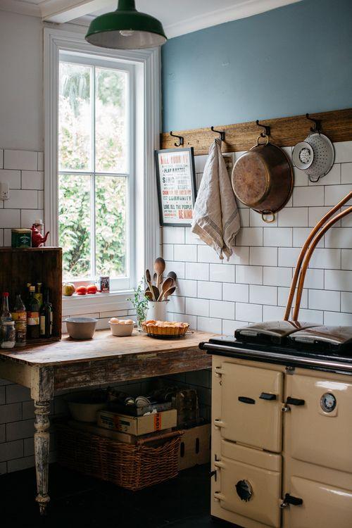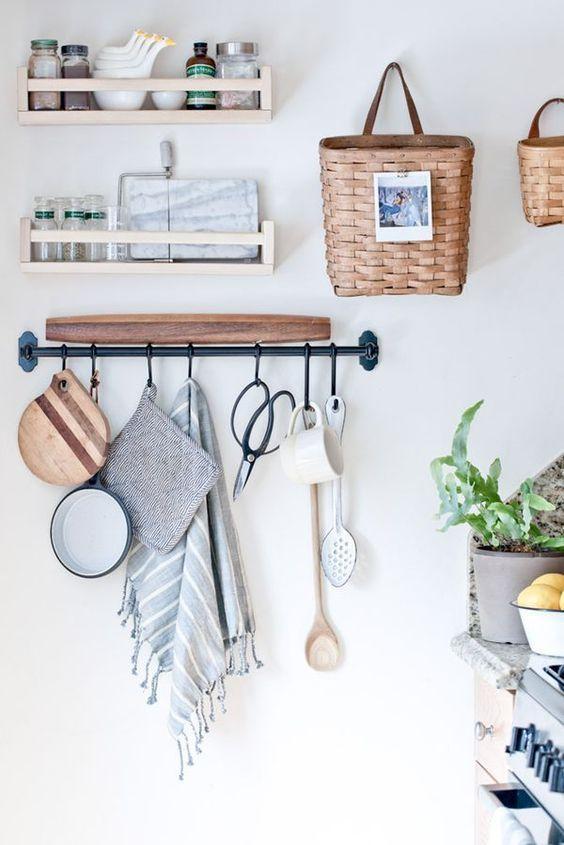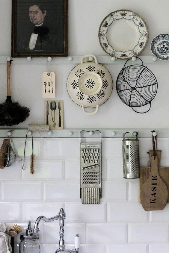 En este caso, las cocinas que sólo se alicatan hasta la mitad ofrecen esta opción extra. Añadir varias barras de colgadores creando un ambiente clásico.