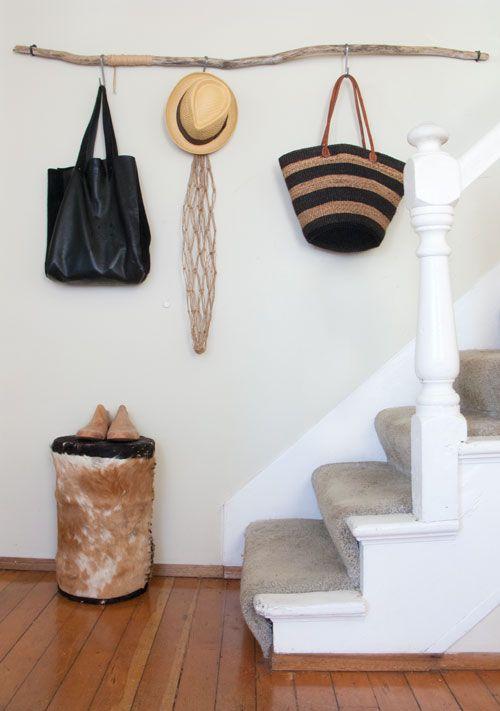 El ya clásico tronco o rama de madera, en el que unos ganchos son suficientes para crear un colgador ideal. Sí, lo hemos visto demasiado, pero sigue siendo una idea genial.