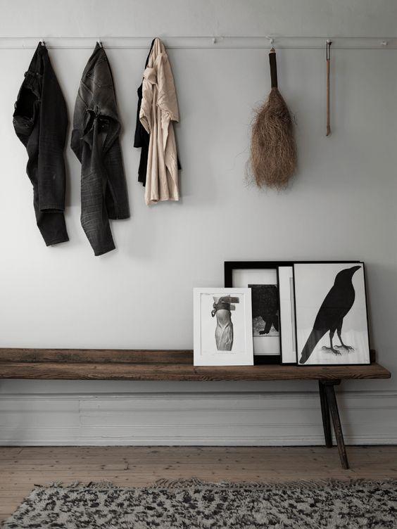 Una solución tradicional y visualmente muy poco intrusiva. Es genial para potenciar la funcionalidad del perchero, y es sin duda, mi opción para el pasillo. ¡Cuándo lo tenga os lo ensño!