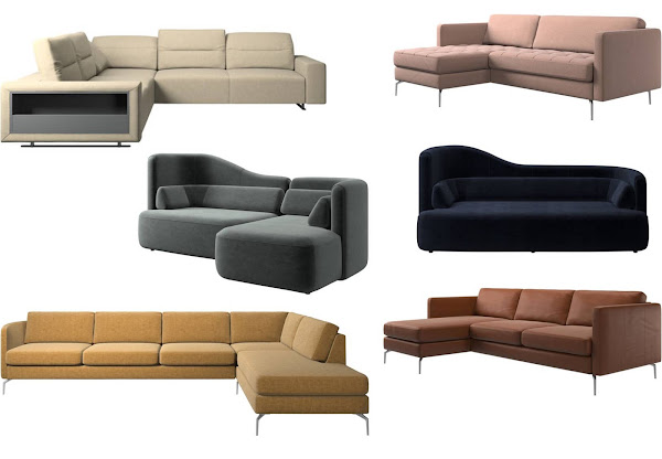 Bo Concept: modelos de líneas y curvas sencillas, para salones modernos, en diferentes versiones.